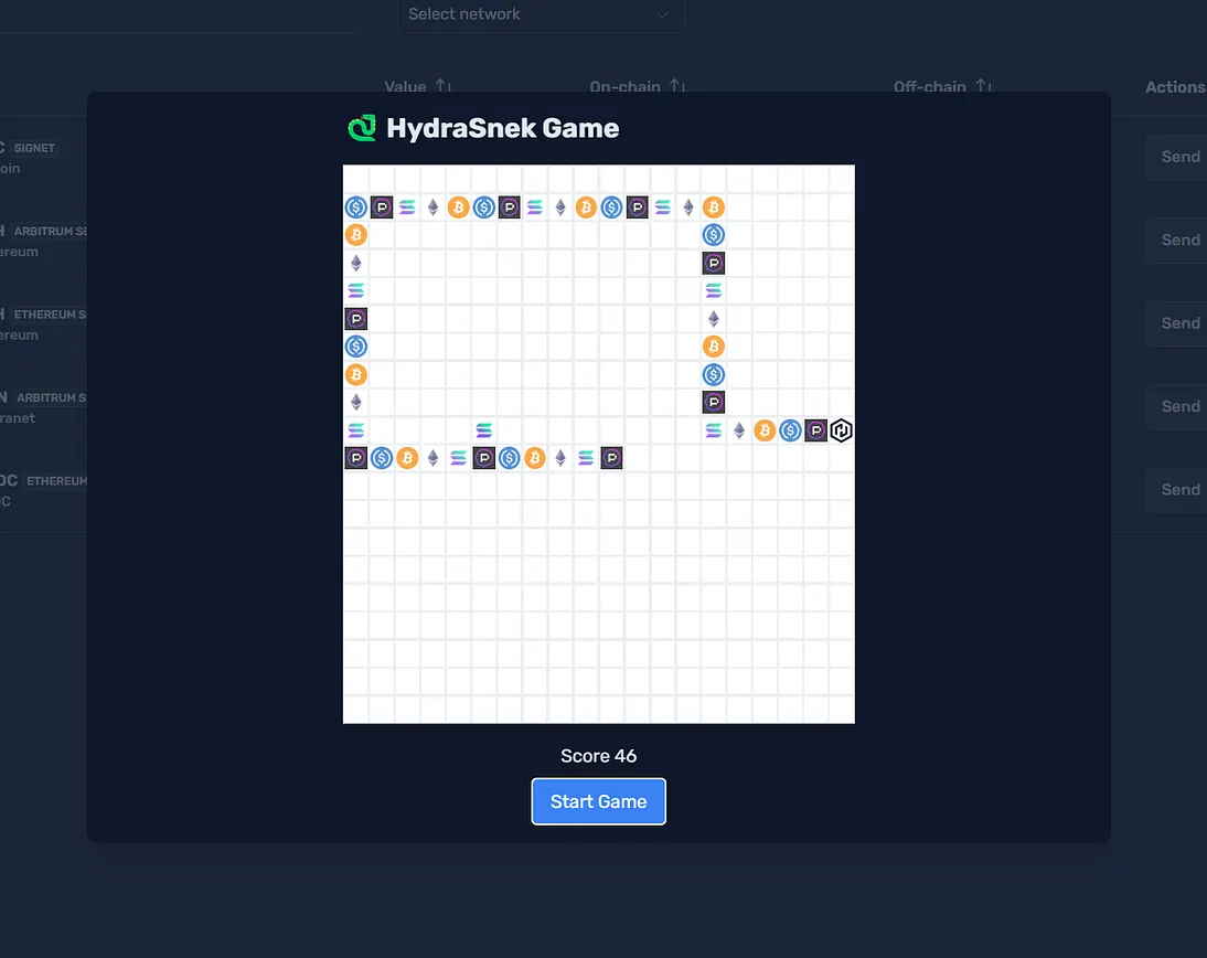 April arrived and the Alpha group saw 70 new participants joining. To make testing even more fun, the team hid a special easter egg inside the Web DEX: HydraSnek, a mini-game inspired by the classic Snake game, but with a Hydranet twist! 🐍